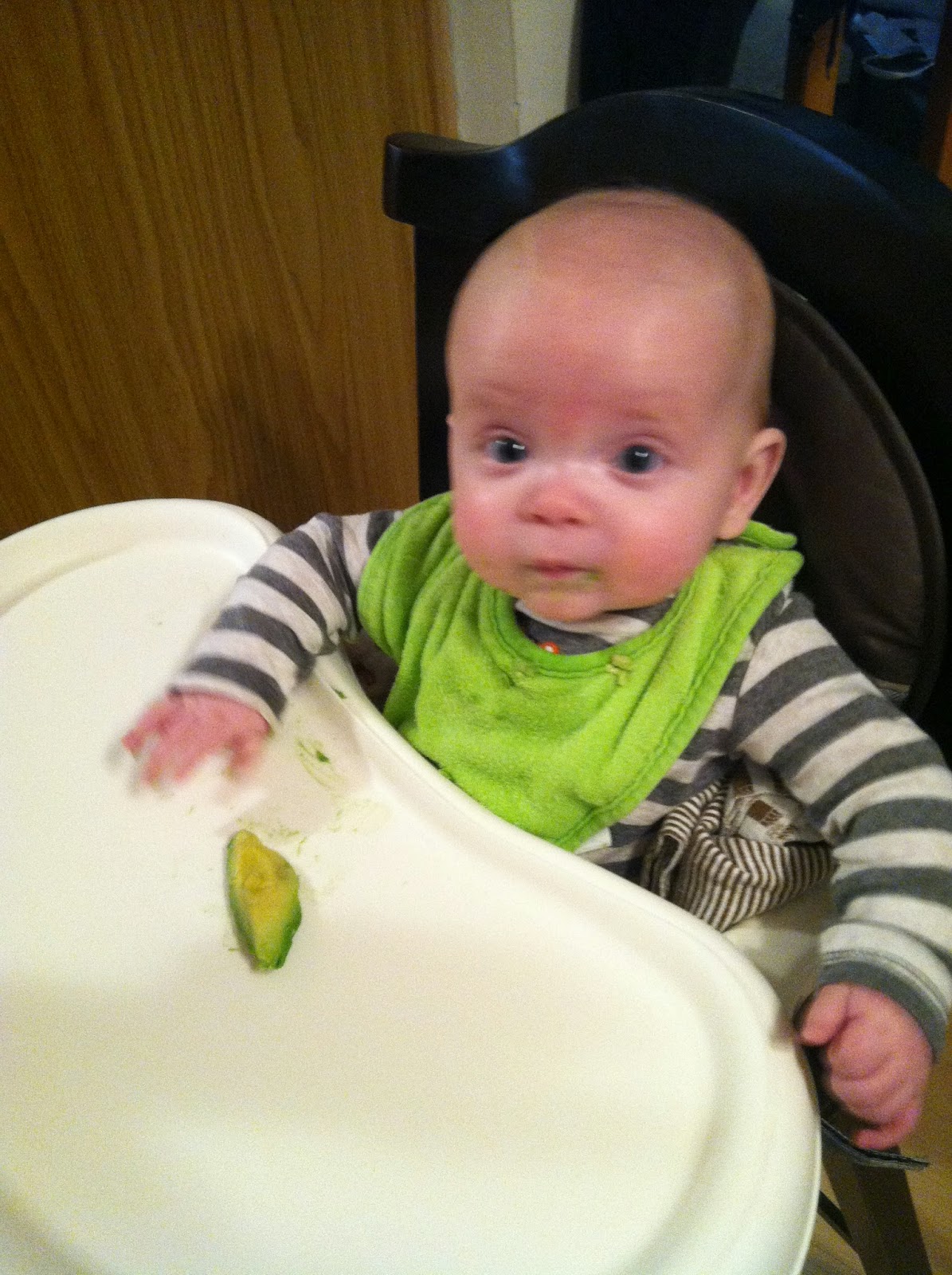 We did start solids at 7 months 2 weeks. As expected, he was much more interested at this time than he was at 6 months. He was sitting up unassisted (even if it was only for a minute or two, not 20+ at a time), he was watching me eat things, and he was putting things into his mouth with accuracy.